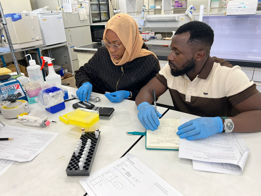 2025年10月1日から7日まで、タンザニアのソコイネ農業大学(SUA)で本プロジェクトの検査や試験室管理を担当しているラボ技術員2名が、酪農学園大学(RGU)にて研修を行いました。研修では、臼井教授および福田講師(RGU)の指導のもと、各種検査の実施方法に加え、試薬や機器の在庫管理、衛生管理など、試験室運営に関する実践的な内容を学びました。
